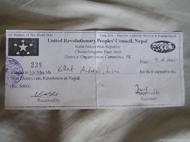 Unser Ticket von den Maoisten - siehe auch Bericht 25 Our Ticket from the Maoists