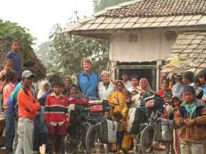 We wouldn't recommend camping outside for cyclists in India. We tried it several times in order to avoid the dirty towns, where you are forced to sleep in narrow and isolated hotel rooms often without windows. However if you don't do anything to stop it, dozens of people come to your tent and stare at you. European people are used to having a private space around them, but the people in this country didn't seem to understand what that meant. In order to watch over our bicycles at night we would always leave the entrance of our tent slightly open. At 6 o'clock in the morning, while we were still sleeping, people came and stared into our "bedroom" while brushing their teeth with bamboo sticks. In such situations we shouted to the people "Go away, go away", and gesticulated wildly. Mostly they didn't understand or would come back after a few minutes.